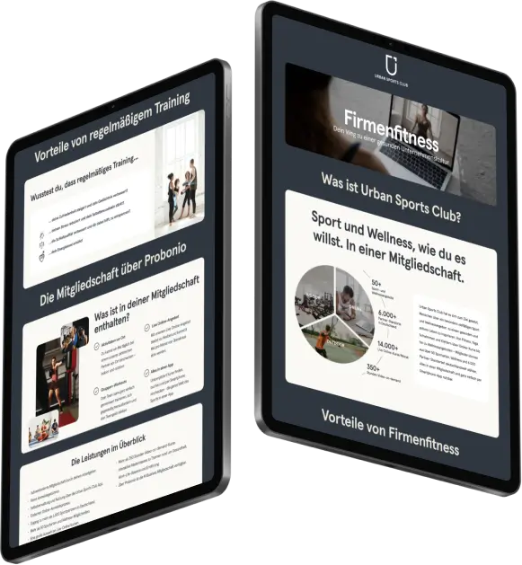 Über Probonio bekommen Ihre Mitarbeitenden die flexible M-Business Mitgliedschaft zum exklusiven Vorteilspreis. Urban Sports Club hat es sich zum Ziel gesetzt, Menschen über ein besonders vielfältiges Sport- und Wellnessangebot zu einem gesunden und aktiven Leben zu inspirieren. Von Fitness, Yoga, Schwimmen und Klettern über Online-Kurse bis hin zu Wellnessangeboten — Mitglieder:innen können aus über 50 Sportarten, Wellness und 6.000 Partner-Standorten deutschlandweit wählen und ganz einfach per Smartphone-App aktiv werden. Da Firmenfitness unter den Sachbezug fällt, kann die Urban Sports Club Mitgliedschaft bis zu einem monatlichen Freibetrag von 50 Euro steuerfrei bezuschusst werden. So können Arbeitnehmende von einer Gehaltserhöhung von bis zu 50 Euro monatlich / 600 Euro jährlich netto profitieren, während Ihr Unternehmen gleichzeitig Lohnnebenkosten spart.