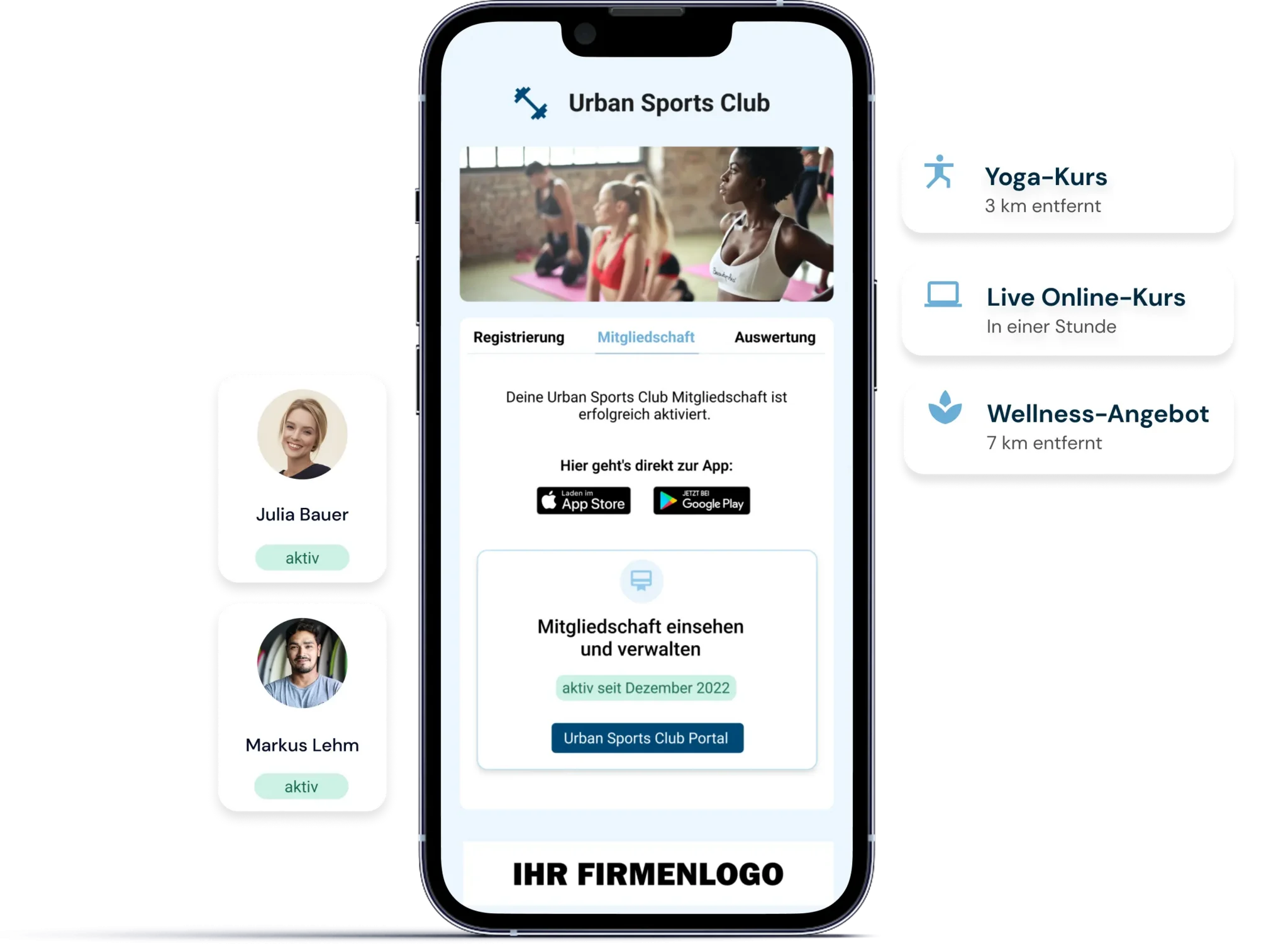 Durch unsere offizielle Partnerschaft mit Urban Sports Club bieten Sie Ihren Mitarbeitenden eine aktive und stressreduzierende Möglichkeit, ihre persönliche Gesundheit und Produktivität zu verbessern. Der Beitrag für die Mitgliedschaft von 50 Euro ist über den steuerfreien Sachbezug absetzbar.