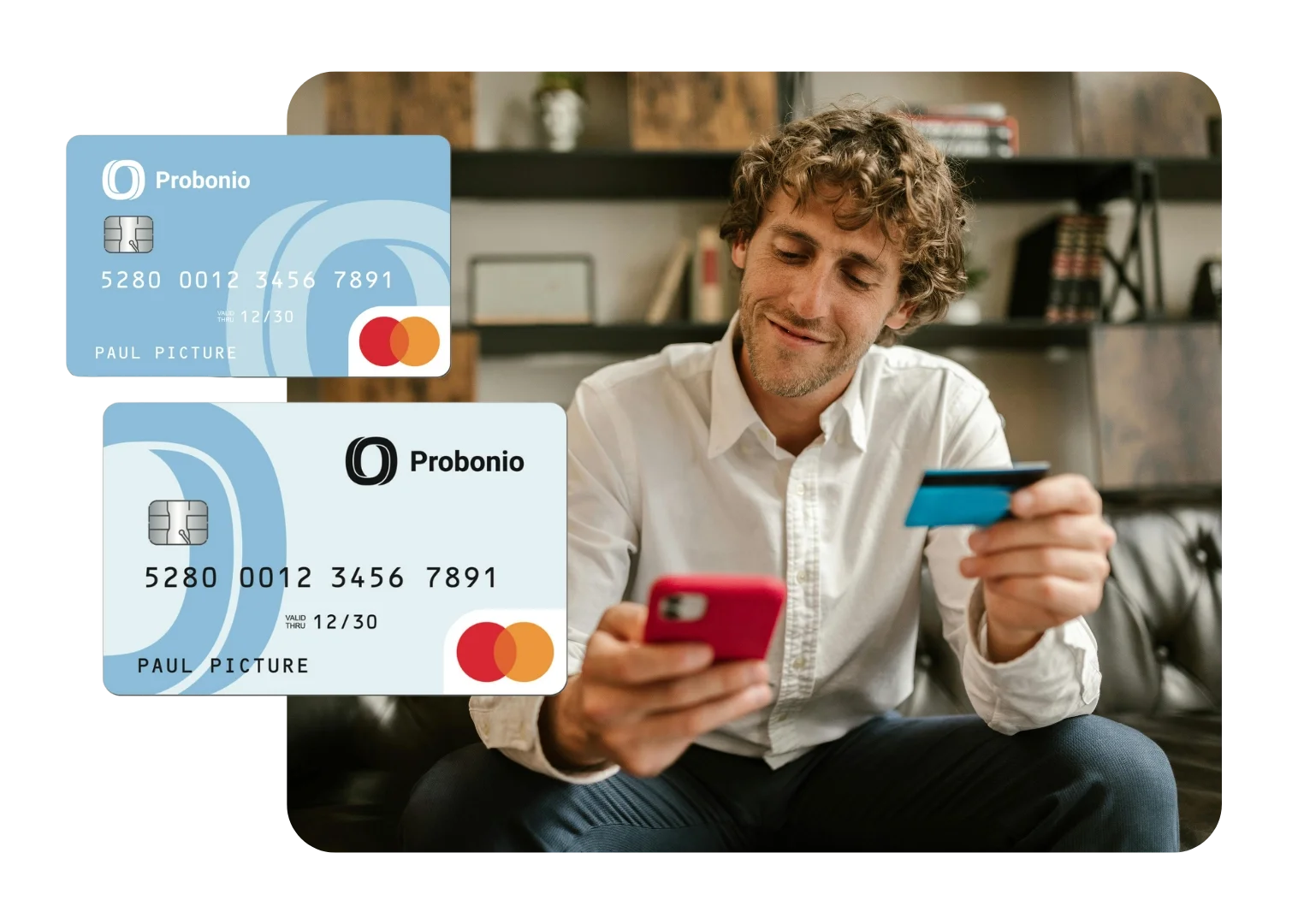 Die physische Sachbezugskarte von Probonio - für alle, die ihren steuerfreien Sachbezug ganz klassisch nutzen möchten. Die monatlich aufladbare Mastercard kann bei allen Mastercard-Akzeptanzstellen eingesetzt werden – ganz einfach und ohne Aufwand.